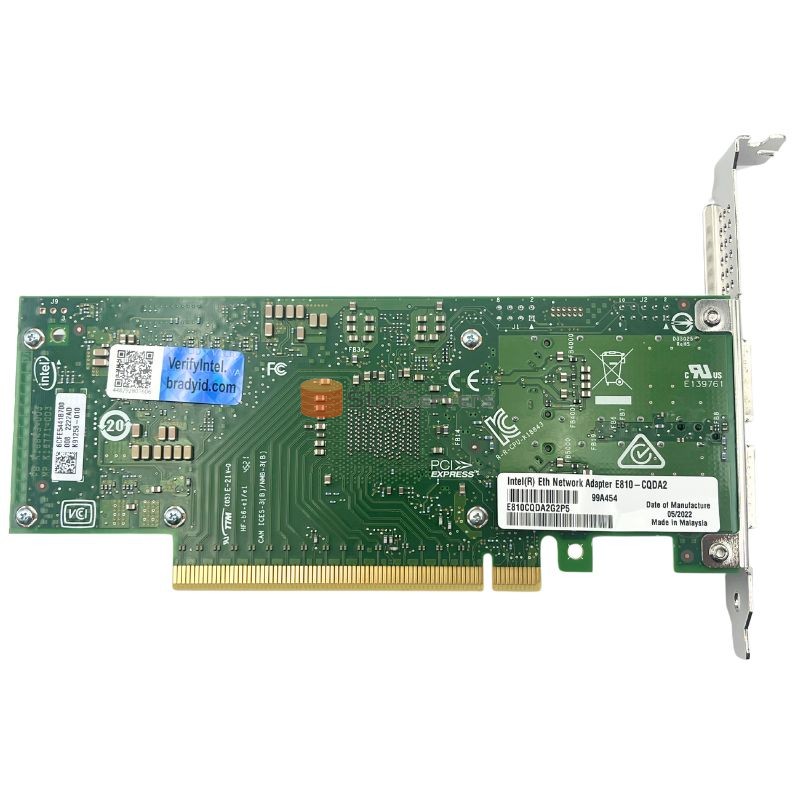 3 YearsThe Intel Ethernet Network Adapter E810CQDA2G2P5 is a dual port 100GbE network adapter designed for enterprise data centers, based on the Intel E810 controller architecture, specifically for high-performance, low latency, and virtualization environments.
